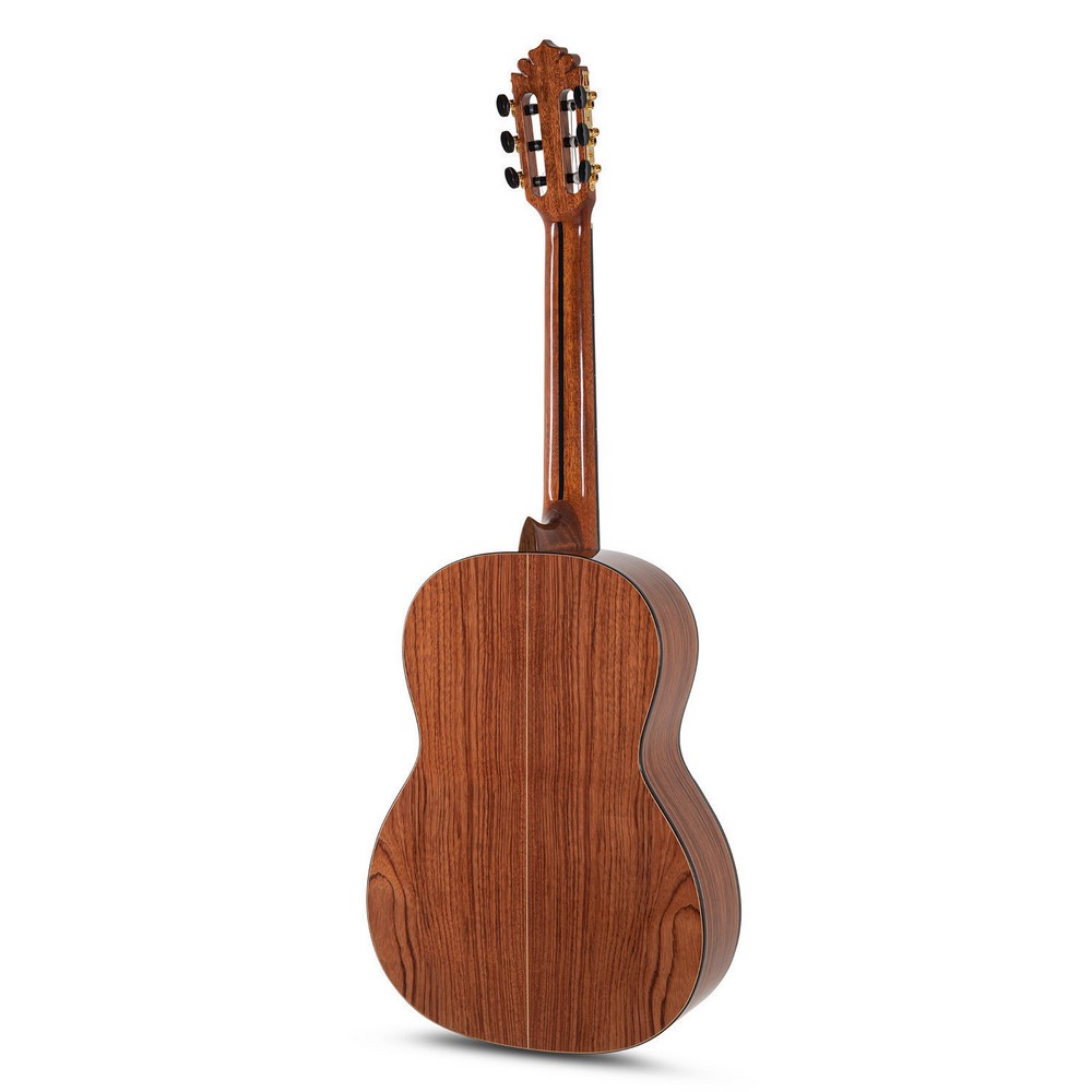 Η σειρά Manuel Rodríguez SUPERIOR προσφέρει εκπληκτικά όργανα με εξαιρετικά ελκυστικά κοκκώδη ξύλα. Η υπεροχή αυτών των κιθάρων δεν περιορίζεται σε καμία περίπτωση στην εμφάνισή τους. Όλα τα μοντέλα είναι εξοπλισμένα με αυθεντικό ισπανικό τακούνι, τη βασιλική κατηγορία στην κατασκευή κιθάρας. Με αυτή την ειδική μέθοδο κατασκευής, ο μονοκόμματος λαιμός εκτείνεται μέσα στο σώμα και συνδέεται απευθείας με τα πλαϊνά, την πλάτη και το καπάκι. Αυτό όχι μόνο εξασφαλίζει τεράστια σταθερότητα, αλλά και βέλτιστη μετάδοση δονήσεων, ταχύτερη απόκριση και μεγαλύτερη διάρκεια. Η καρδιά μιας ισπανικής κιθάρας. Όλα τα όργανα SUPERIOR είναι χειροποίητα στην Ευρώπη και διαθέτουν πρόσθετα χαρακτηριστικά που είναι αρκετά ιδιαίτερα σε αυτό το μέτριο εύρος τιμής. Αυτά περιλαμβάνουν το λαιμό από μαόνι, που έχει ένθετο από έβενο στο πίσω μέρος για σταθερότητα, τους καβαλάρηδες κεφαλής και γέφυρας, σχηματισμένοι στο χέρι από λιπασμένο κόκκαλο vintage, και την οικολογική λάκα υψηλής γυαλάδας με βάση το νερό. Η πρωτοποριακή γέφυρα Moreno 12 οπών, λόγω της ειδικής κατασκευής της, επιτρέπει στις χορδές να έχουν πάντα την ίδια πίεση επαφής στον καβαλάρη της γέφυρας. Σε αντίθεση με την τυπική γέφυρα 6 οπών, οι χορδές μπορούν να στερεωθούν πιο εύκολα, γρήγορα και με ασφάλεια. Ο κίνδυνος να γλιστρήσουν οι χορδές και να καταστρέψουν το πάνω μέρος μειώνεται σημαντικά. Ένα ιδιαίτερο χαρακτηριστικό όλων των κιθάρων Manuel Rodríguez 4/4 είναι το στήριγμα χεριού GEWA, το οποίο προσφέρει δύο καθοριστικά πλεονεκτήματα: το στρογγυλεμένο σχήμα του εξασφαλίζει μια ιδιαίτερα ευχάριστη αίσθηση παιχνιδιού και επιτρέπει στο ηχείο να δονείται ελεύθερα σε ολόκληρη την επιφάνεια, καθώς εμποδίζει την απόσβεση από το δεξί χέρι. Περισσότερος ήχος, περισσότερη άνεση. Οι γερμανικής κατασκευής χορδές Hannabach 815HTC τοποθετούνται στο εργοστάσιο και ολοκληρώνουν τέλεια την τονική ποιότητα αυτής της σειράς.